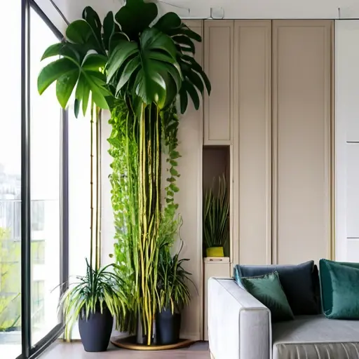 Да, крупные растения или вертикальные композиции помогают зонировать пространство и создавать уютные уголки.
