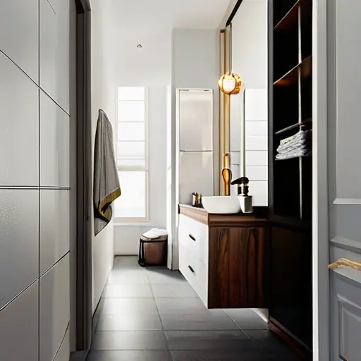 Для гостевого санузла важна не только сантехника, но и удобная мебель — например, небольшой шкаф или полка для хранения дополнительных туалетных принадлежностей. Многофункциональные конструкции с встроенными держателями для туалетной бумаги, полотенец и других мелочей могут значительно повысить функциональность помещения.